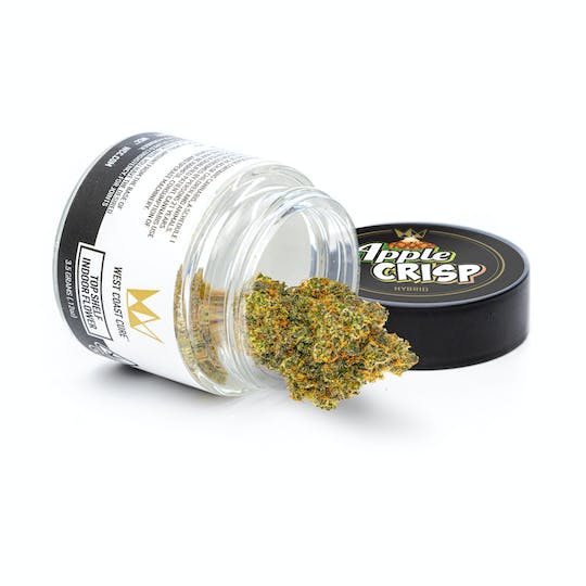 Apple Crisp is an Indica-leaning Hybrid that mixes some of the best phenotypes from the Cookies strain crossed with a Sour Apple x Sour Diesel. Frosty, tight, knuckled, and supple, the flowers express an earthy nose of baked apples and spicy pastries. A peppery and smooth hitting cannabis confection for the connoisseur in your smoke circle, the effects help hit the mental ‘pause’ or ‘slow motion’ button – allowing for immersive thought.
