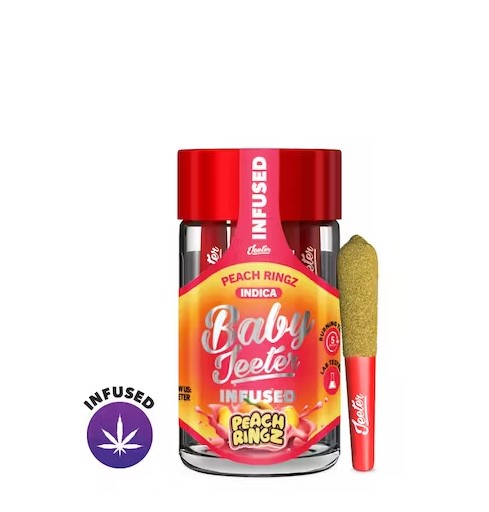Peach Ringz Baby Jeeter Infused – Five .5g Joints 2.5g | Indica | 37.15% THC Indoor Grown Infused with Distillate Oil & Kief