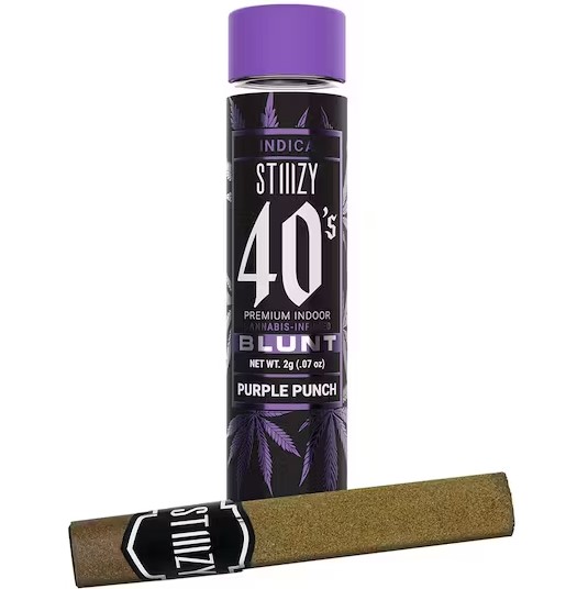 Biscotti Strain. Stiiizy 40s blunts are rolled with 100% tobacco free, kief dusted hemp wraps, secured tightly around a glass tip. We’ve packed each infused blunt with high quality indoor flower so that every inhale is just as good as every exhale. Stiiizy 40s Blunts are reinventing the way you get high by being the first to introduce 40%+ THC potency with live resin infusion. Pass the blunt.