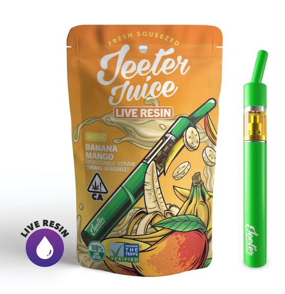 Banana Mango Juice Disposable Live Resin Straw: 500 mg | Sativa | 74.59% THC (Per Straw)